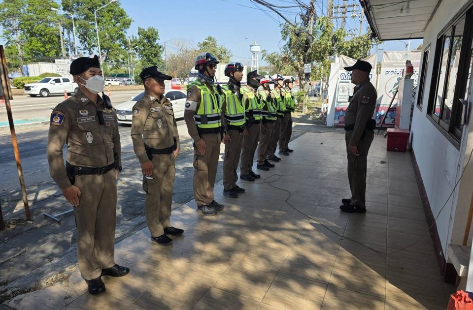 กำชับงานจราจรก่อนออกปฏิบัติหน้าที่ตั้งจุดตรวจจุดสกัด