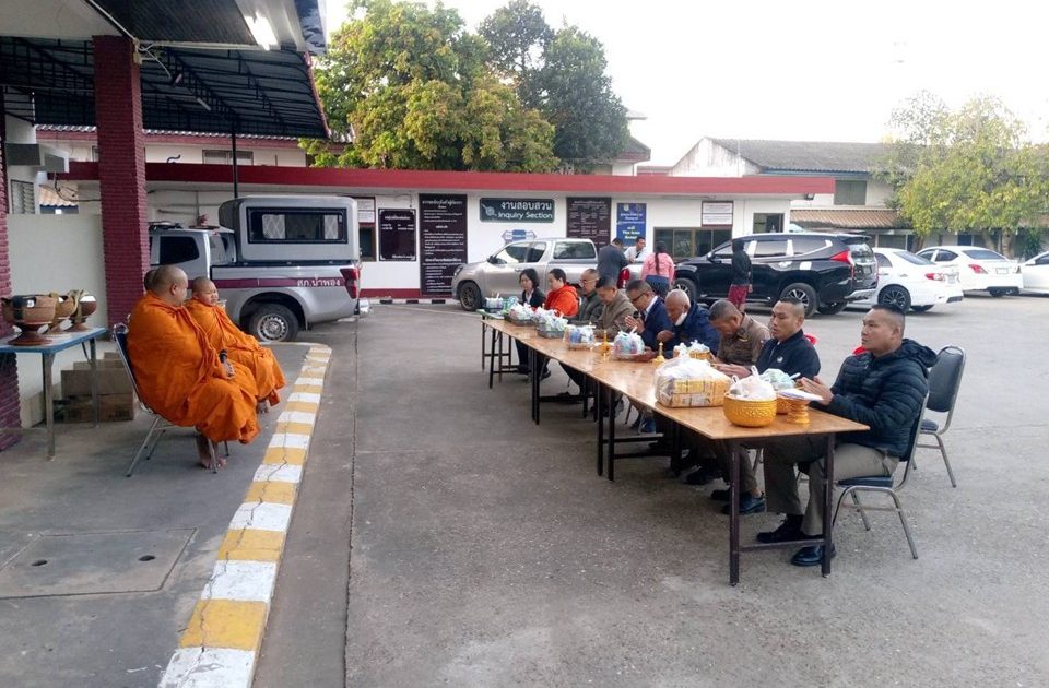 พ.ต.อ.ชุมพล บัวชุม ผกก.สภ. น้ำพอง พร้อมด้วยข้าราชการตำรวจ สภ.น้ำพอง ร่วมกันทำบุญตักบาตรประจำสัปดาห์ ณ ลานหน้า สภ.น้ำพอง