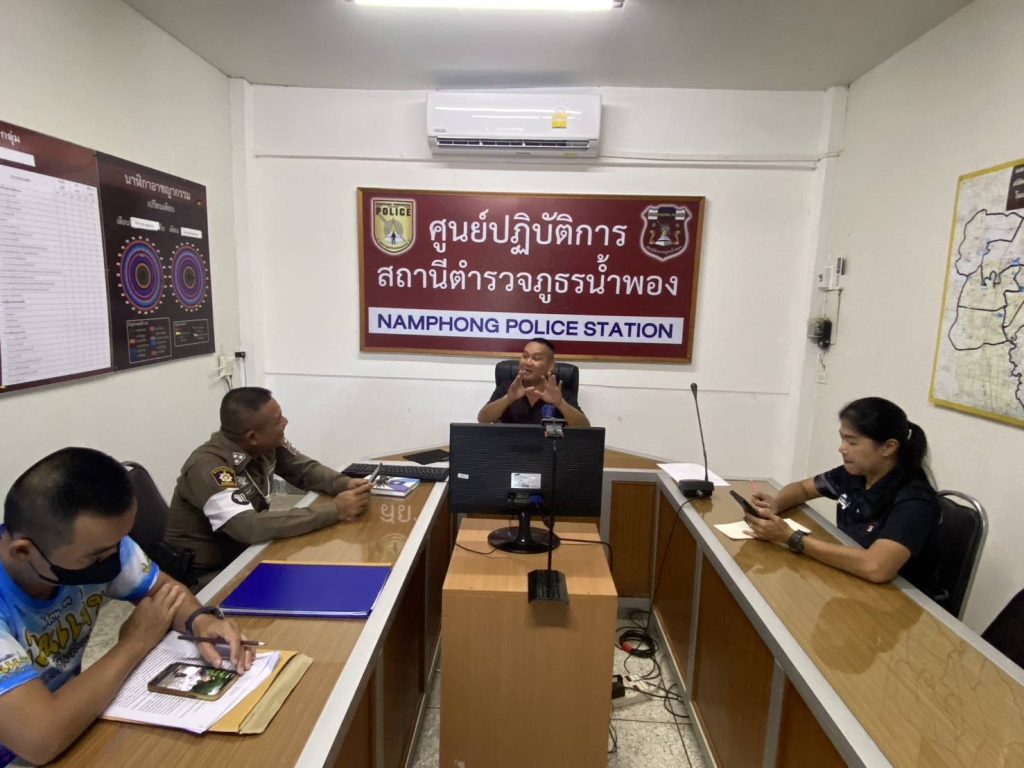 พ.ต.ท.สถิตย์ ตอสี สว.อก.สภ.น้ำพอง พร้อมเจ้าหน้าที่ที่เกี่ยวข้อง