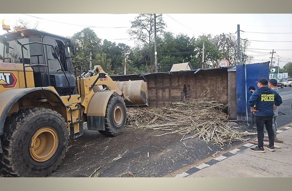 ตรวจสอบเหตุรถบรรทุกอ้อยพลิกคว่ำ
