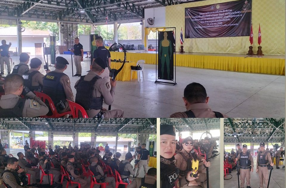 เข้าร่วมฝึกอบรมการใช้ยุทธวิธีควบคุมบุคคลที่มีอาการคลุ้มคลั่งด้วยไม้ง่ามไฟฟ้าและปืนช็อตไฟฟ้า ณ อาคารเอนกประสงค์เทศบาลเมืองบ้านเป็ด