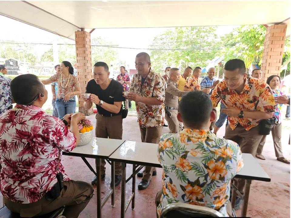 วันที่ 11 เมษายน 2567 เวลา 14.00 น. พ.ต.อ.ชุมพล บัวชุม ผกก.สภ.น้ำพอง, พ.ต.ท.อภินันท์ รักศิลป์ รอง ผกก.(สอบสวน)ฯ, พ.ต.ท.วิธาน ชะลอกลาง รอง ผกก.ป.ฯ, พ.ต.ต.พนมกร ปุญญะโสภณ สวป.ฯ, พ.ต.ต.อำนาจ องอาจ สวป.(ชส.)ฯ พร้อมข้าราชการตำรวจ สภ.น้ำพอง และ คณะ กต.ตร.สภ.น้ำพอง ร่วมกิจกรรมรดน้ำดำหัว ขอพรผู้ใหญ่ตามประเพณี เนื่องในวันสงกรานต์ประจำปี 32567 เพื่อความเป็นสิริมงคล และเป็นการร่วมสืบสานประเพณีไทยที่งดงามให้คงอยู่สืบไป ณ สภ.น้ำพอง