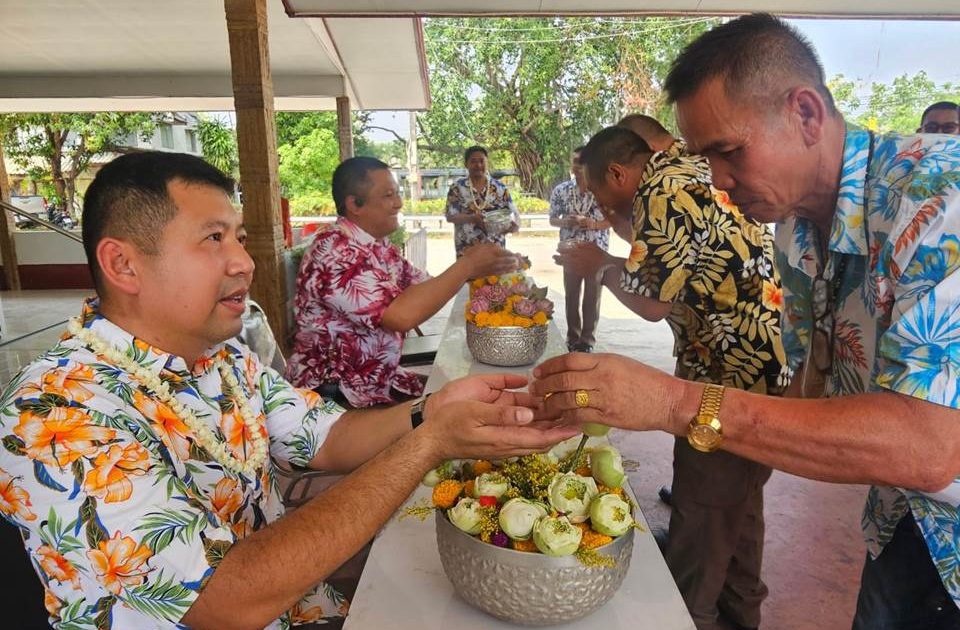 วันที่ 11 เมษายน 2567 เวลา 14.00 น. พ.ต.อ.ชุมพล บัวชุม ผกก.สภ.น้ำพอง, พ.ต.ท.อภินันท์ รักศิลป์ รอง ผกก.(สอบสวน)ฯ, พ.ต.ท.วิธาน ชะลอกลาง รอง ผกก.ป.ฯ, พ.ต.ต.พนมกร ปุญญะโสภณ สวป.ฯ, พ.ต.ต.อำนาจ องอาจ สวป.(ชส.)ฯ พร้อมข้าราชการตำรวจ สภ.น้ำพอง และ คณะ กต.ตร.สภ.น้ำพอง ร่วมกิจกรรมรดน้ำดำหัว ขอพรผู้ใหญ่ตามประเพณี เนื่องในวันสงกรานต์ประจำปี 32567 เพื่อความเป็นสิริมงคล และเป็นการร่วมสืบสานประเพณีไทยที่งดงามให้คงอยู่สืบไป ณ สภ.น้ำพอง