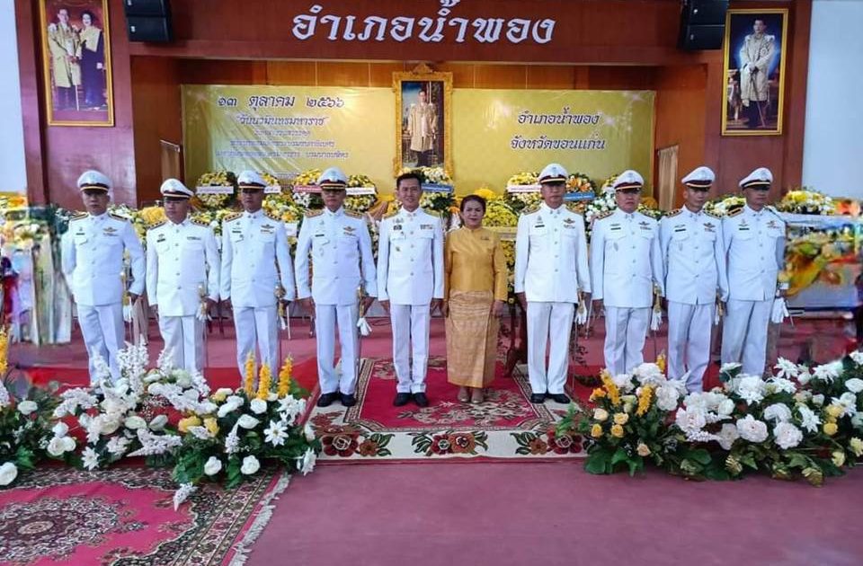 พ.ต.อ.พรศักดิ์ งามดี ผกก.สภ.น้ำพอง นำข้าราชการตำรวจในสังกัดฯ ร่วมกิจกรรมน้อมรำลึกในพระมหากรุณาธิคุณ เนื่องใน “วันนวมินทรมหาราช” วันคล้ายวันสวรรคต พระบาทสมเด็จพระบรมชนกาธิเบศร มหาภูมิพลอดุลยเดชมหาราช บรมนาถบพิตร (13 ตุลาคม 2566) ดังนี้