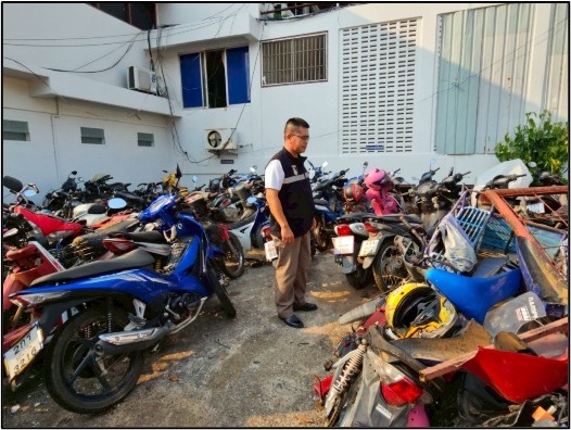 พ.ต.อ.ชุมพล บัวชุม ผกก.สภ.น้ำพอง, พ.ต.ท.ชาญชัย นามวงษา สว.(สอบสวน) ทำหน้าที่หัวหน้างานธุรการคดี เจ้าหน้าที่ควบการปฏิบัติการดูแลเก็บรักษาของกลางในคดีอาญา จราจร พร้อมด้วย เจ้าหน้าที่ดูแลของกลางในคดีอาญา จราจร ร่วมตรวจสอบห้องเก็บของกลางในคดีอาญา และและสถานที่จัดเก็บของกลาง ประจำเดือน กุมภาพันธ์ 2568