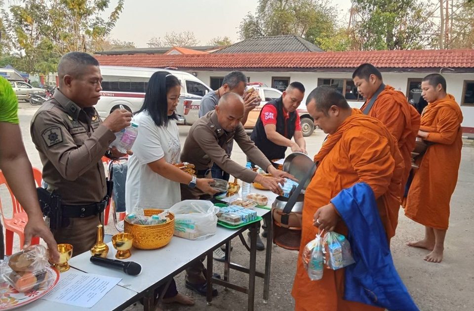 ร่วมกันทำบุญตักบาตร ณ ลานหน้า สภ.น้ำพอง