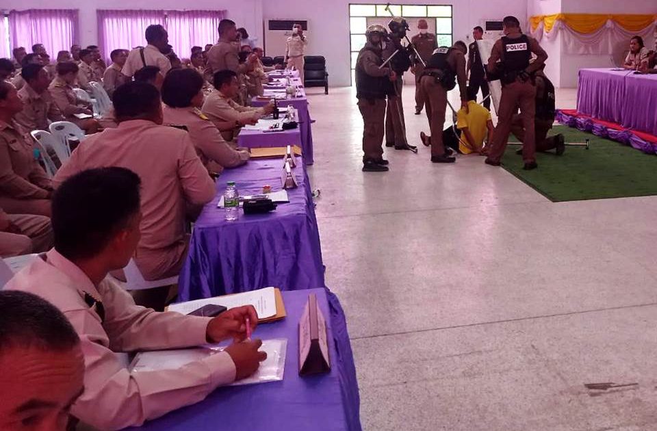 ภายใต้การอำนวยการโดย พ.ต.อ.ชุมพล บัวชุม ผกก.สภ.น้ำพอง สั่งการให้ ร.ต.อ.ชัยชนะ ภาโนมัย รอง สวป.ฯ พร้อมชุดปฏิบัติการสายตรวจรถยนต์ รถจักรยานยนต์ เป็นวิทยากร สาธิตการระงับเหตุคนคลุ้มคลั่ง ณ หอประชุม 100 ปี อ.น้ำพอง จ.ขอนแก่น