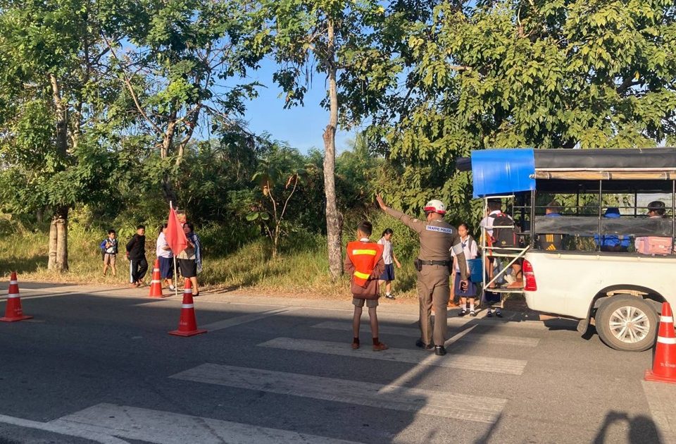 อำนวยความสะดวกการจราจร หน้าโรงเรียนน้ำพอง