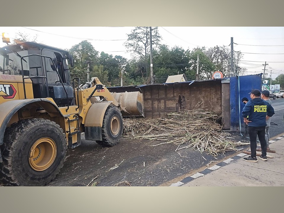 ตรวจสอบเหตุรถบรรทุกอ้อยพลิกคว่ำ