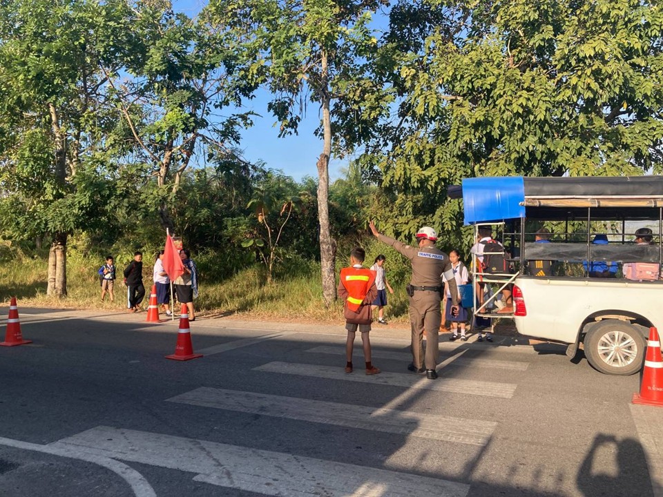 วันที่ 2 ธันวาคม 6257 เวลา 07.15 น.ส.ต.อ.ไทยสัน บัวทอง ผบ.หมู่(จร.)สภ.น้ำพอง อำนวยความสะดวกการจราจร