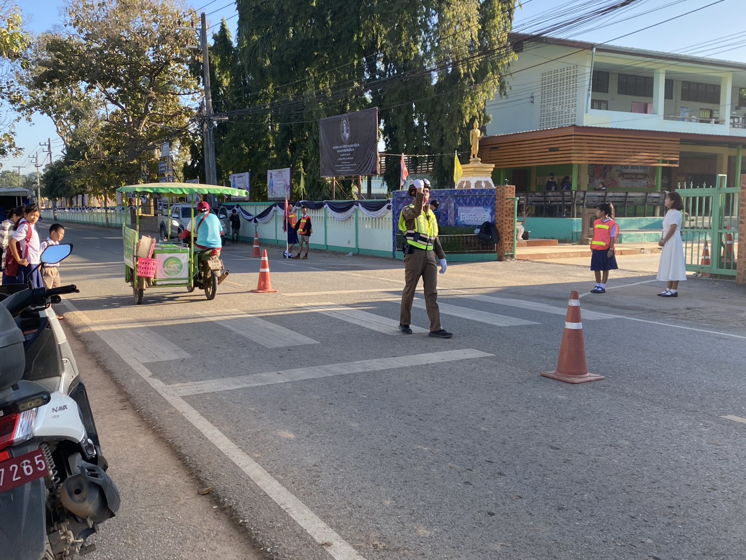 อำนวยความสะดวกการจราจรหน้าโรงเรียนน้ำพอง