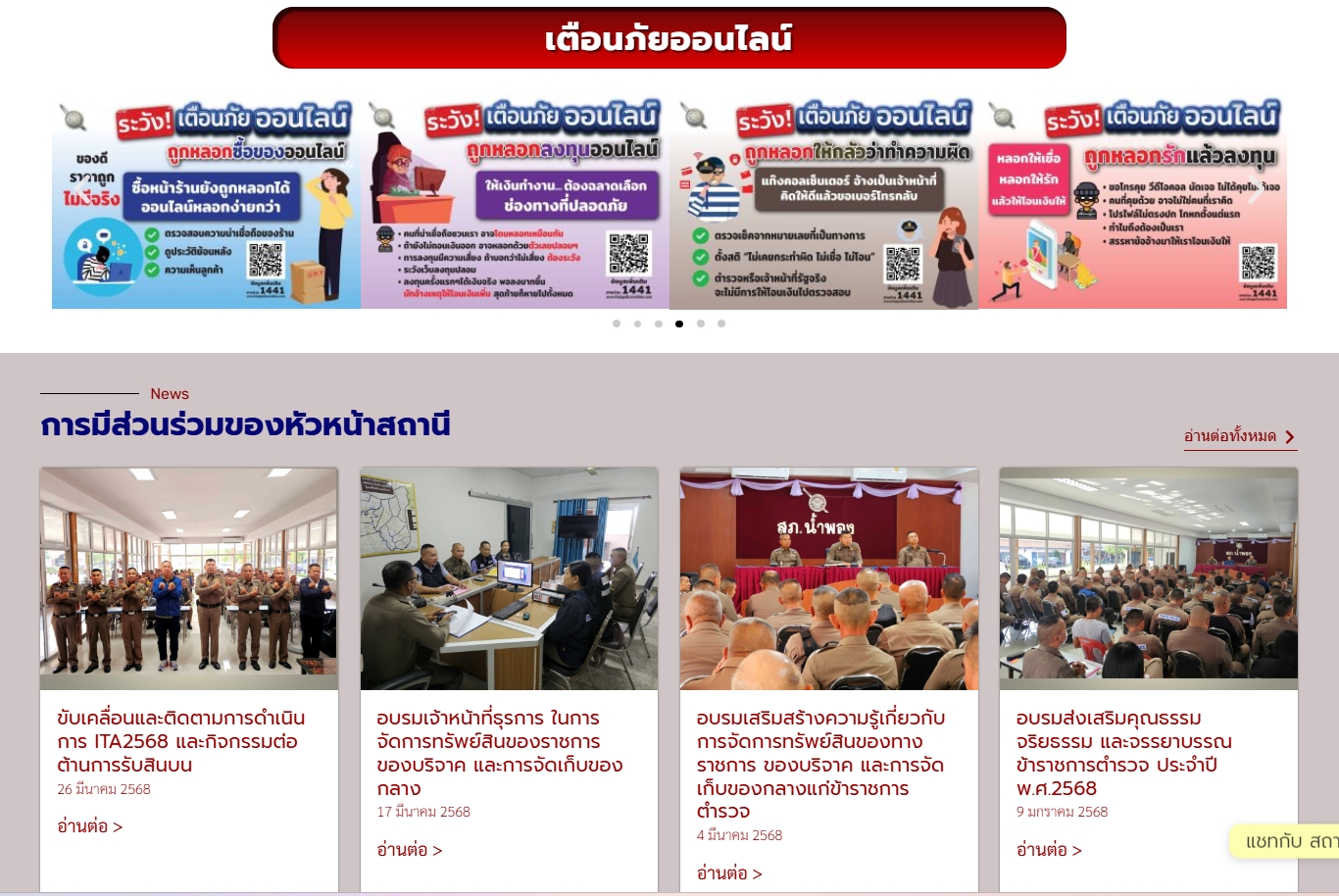ช่องทางการเผยแพร่ผ่านหน้าเว็บไซต์หลักของสถานีตำรวจ